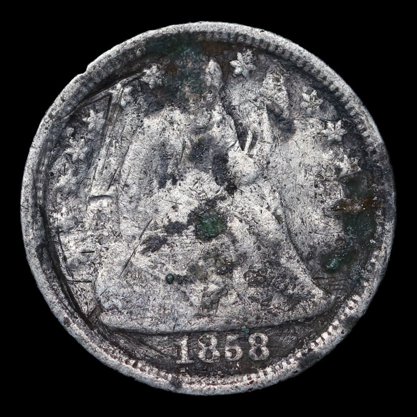 1858-o Seated Liberty Dime 10c Grades vf details.