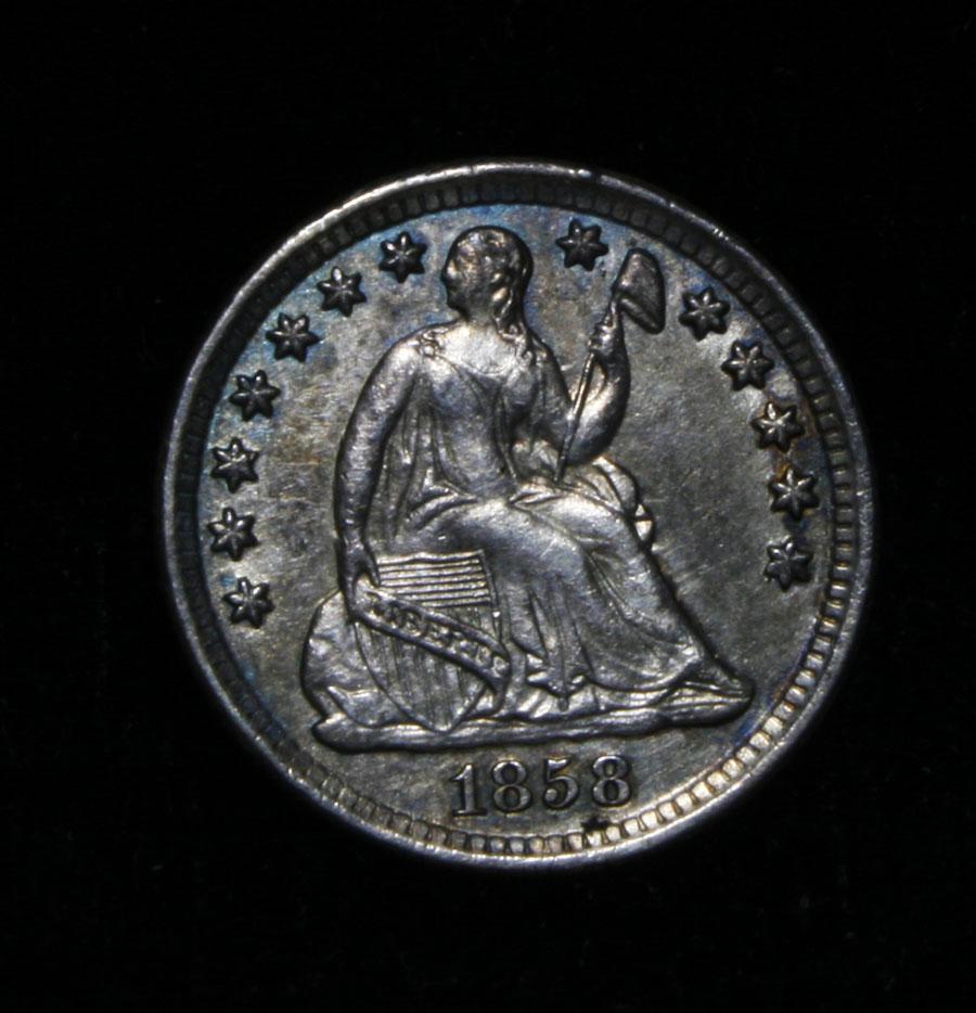 Very Pretty and Lustrous Half Dime with nice color. Coin World's Coin Values lists ms63 at $700 and The Wholesale Greysheet lists ms63 at $300. Estimated Value $400