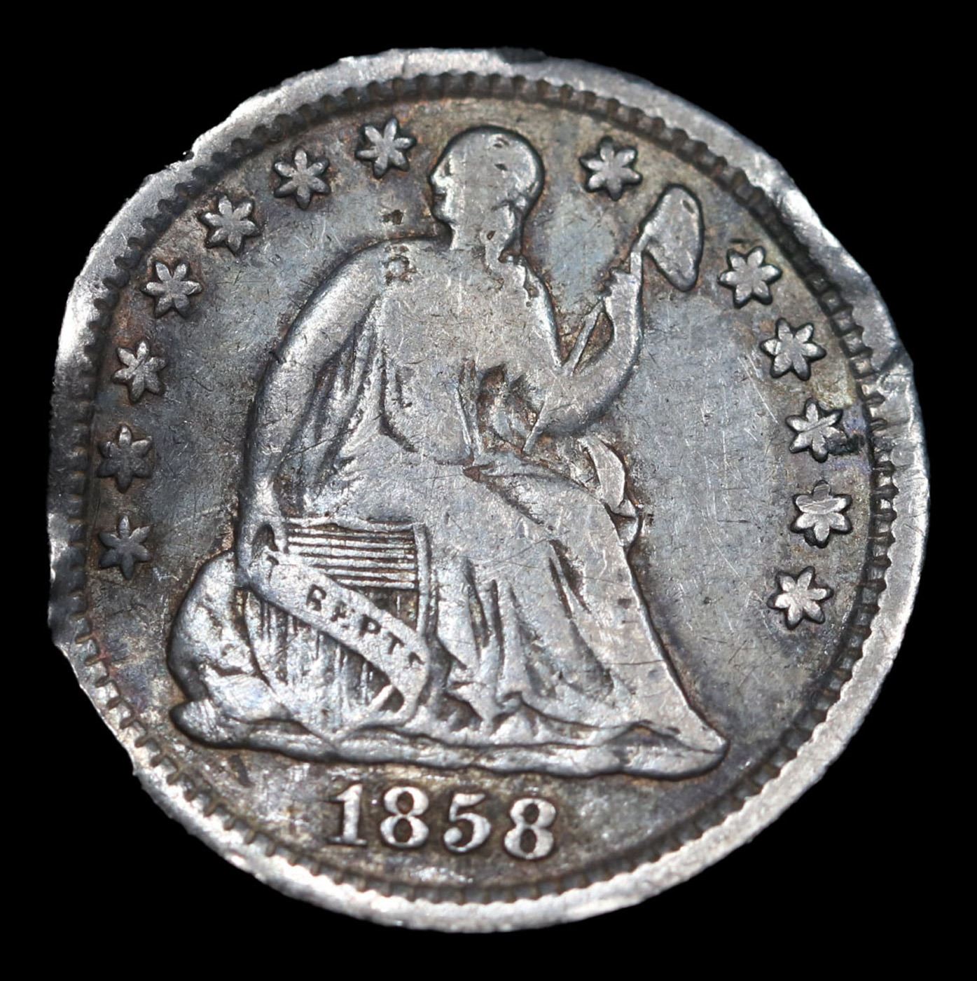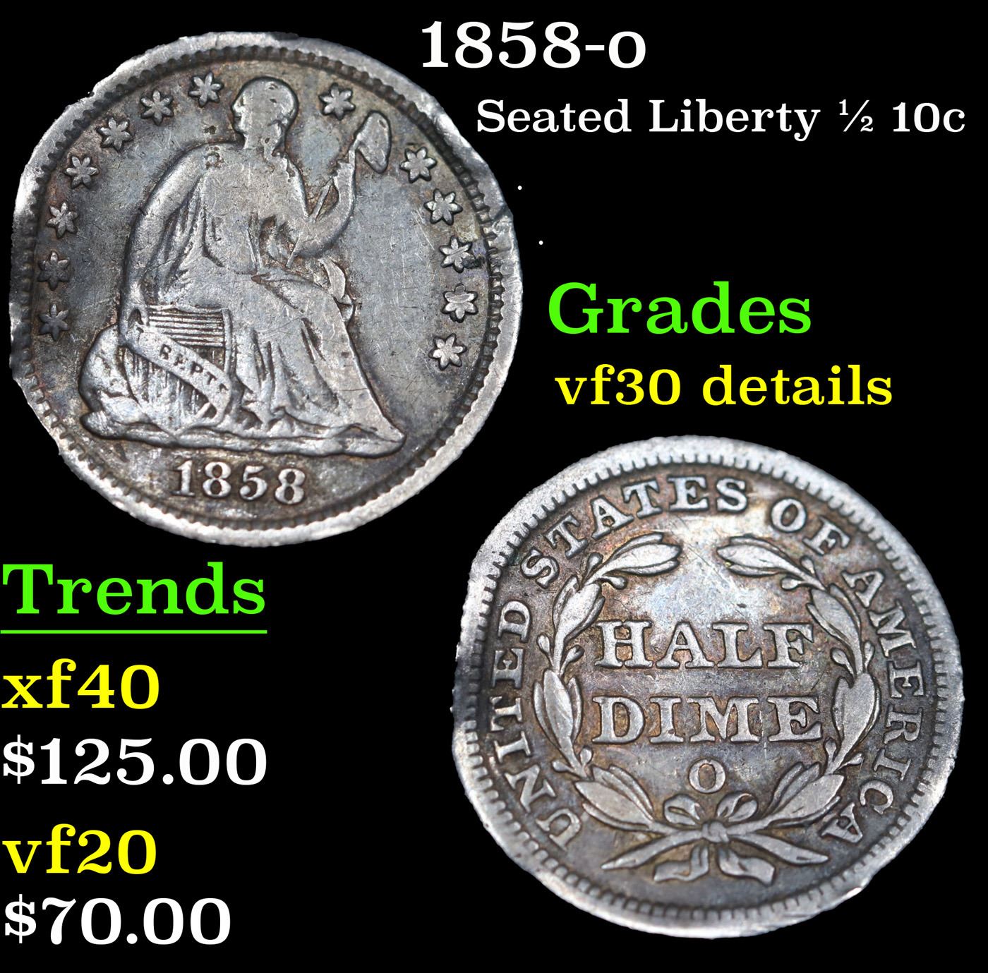 1858-o Seated Liberty Half Dime 1/2 10c Grades VF Details.
