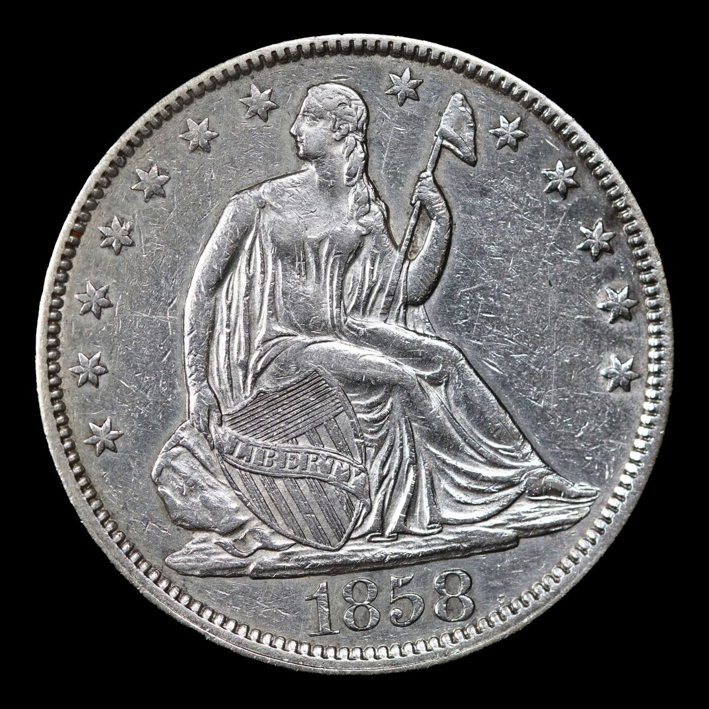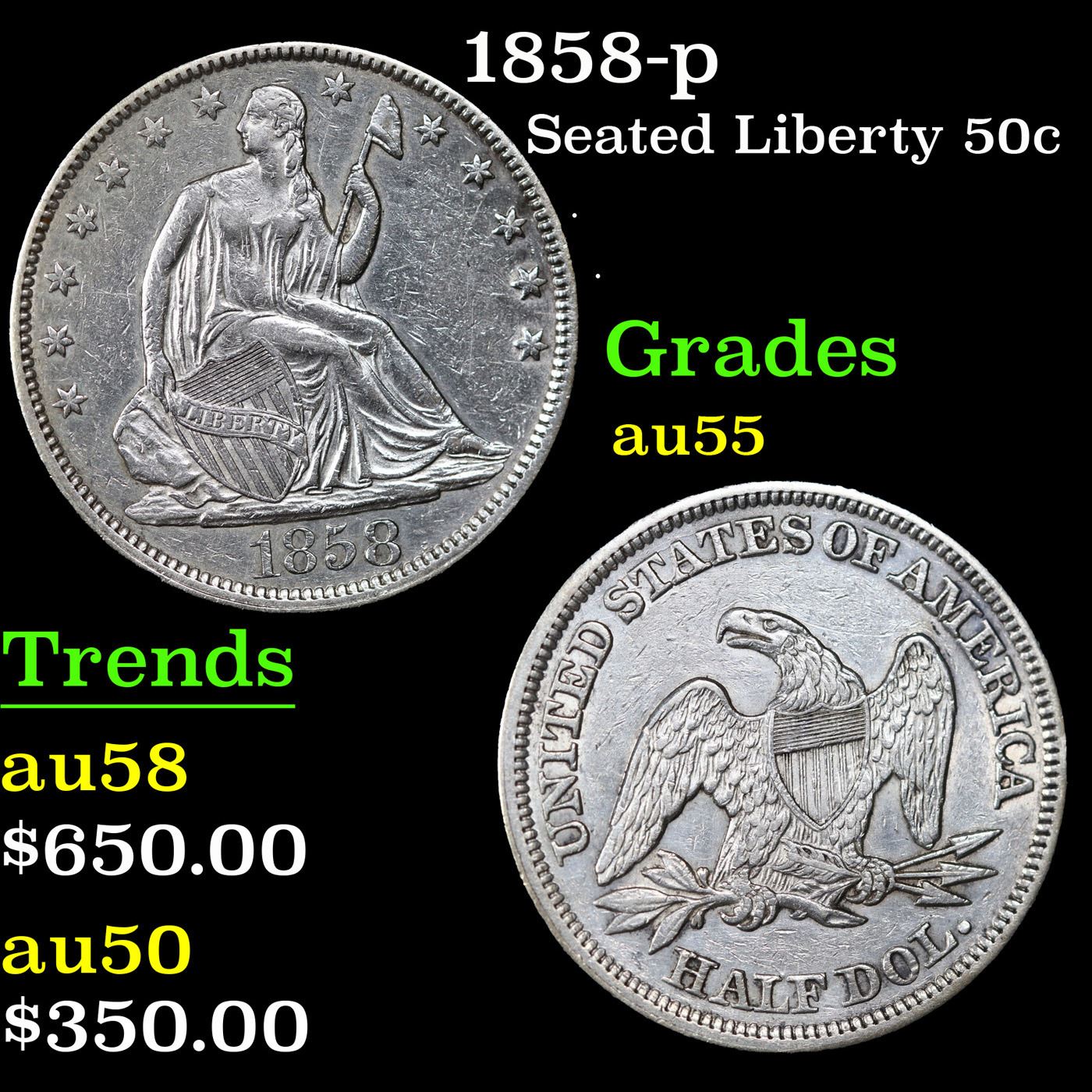 1858-p Seated Half Dollar 50c Grades Choice AU.