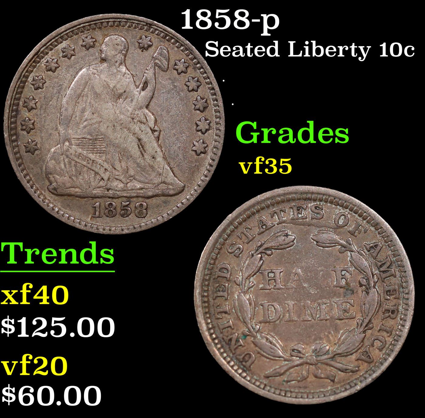 1858-p Seated Liberty Dime 10c Grades vf++.