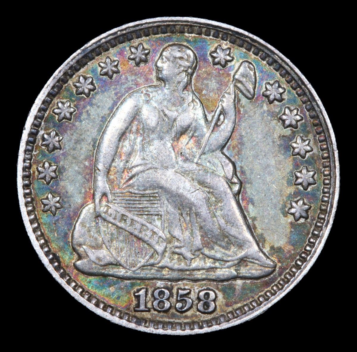 1858-p . . Seated Liberty Half Dime 1/2 10c Grades Select AU.