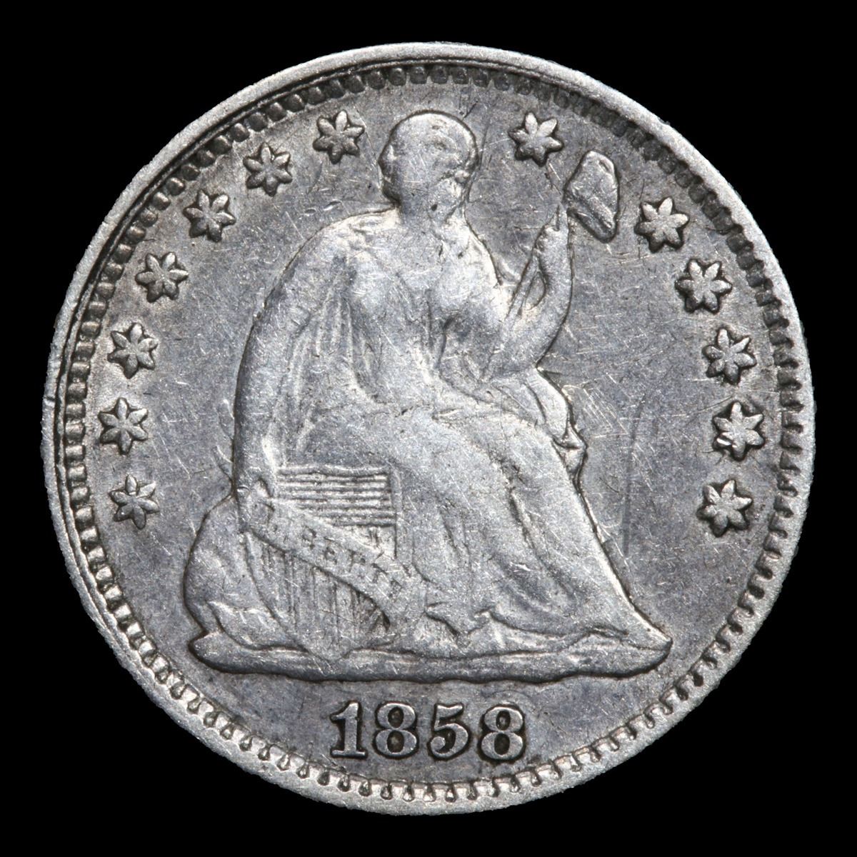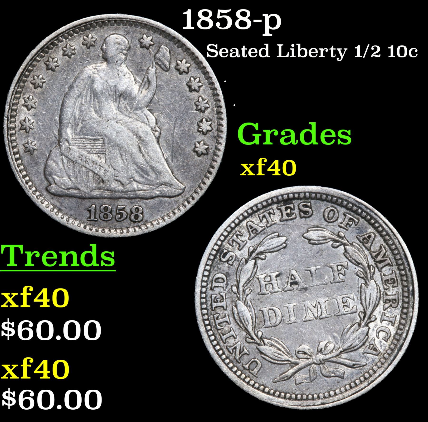 1858-p . . Seated Liberty Half Dime 1/2 10c Grades xf.