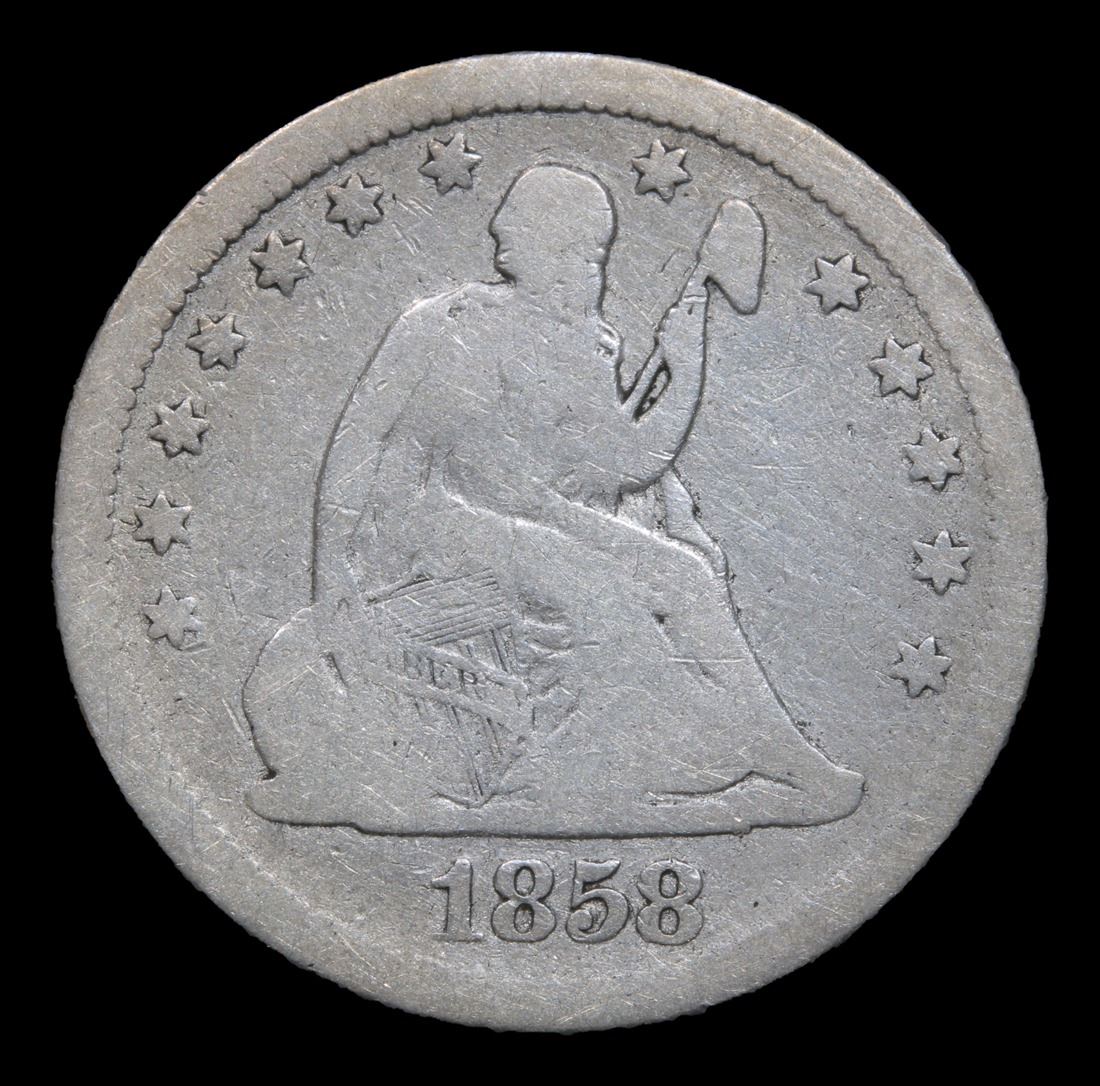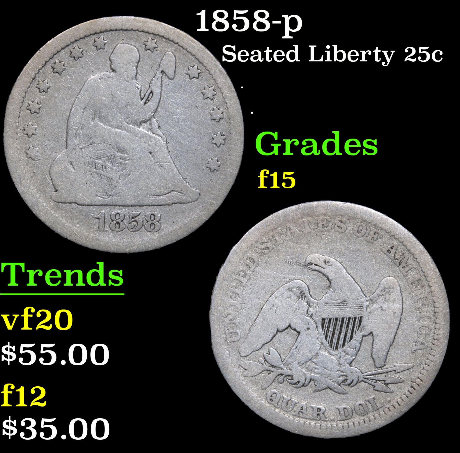 1858-p . . Seated Liberty Quarter 25c Grades f+.