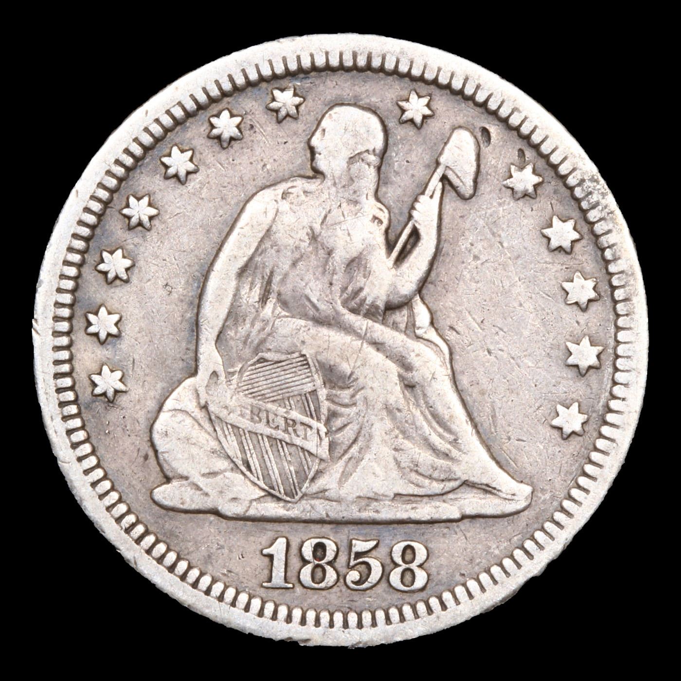 1858-p Seated Liberty Quarter 25c Grades vf, very fine.