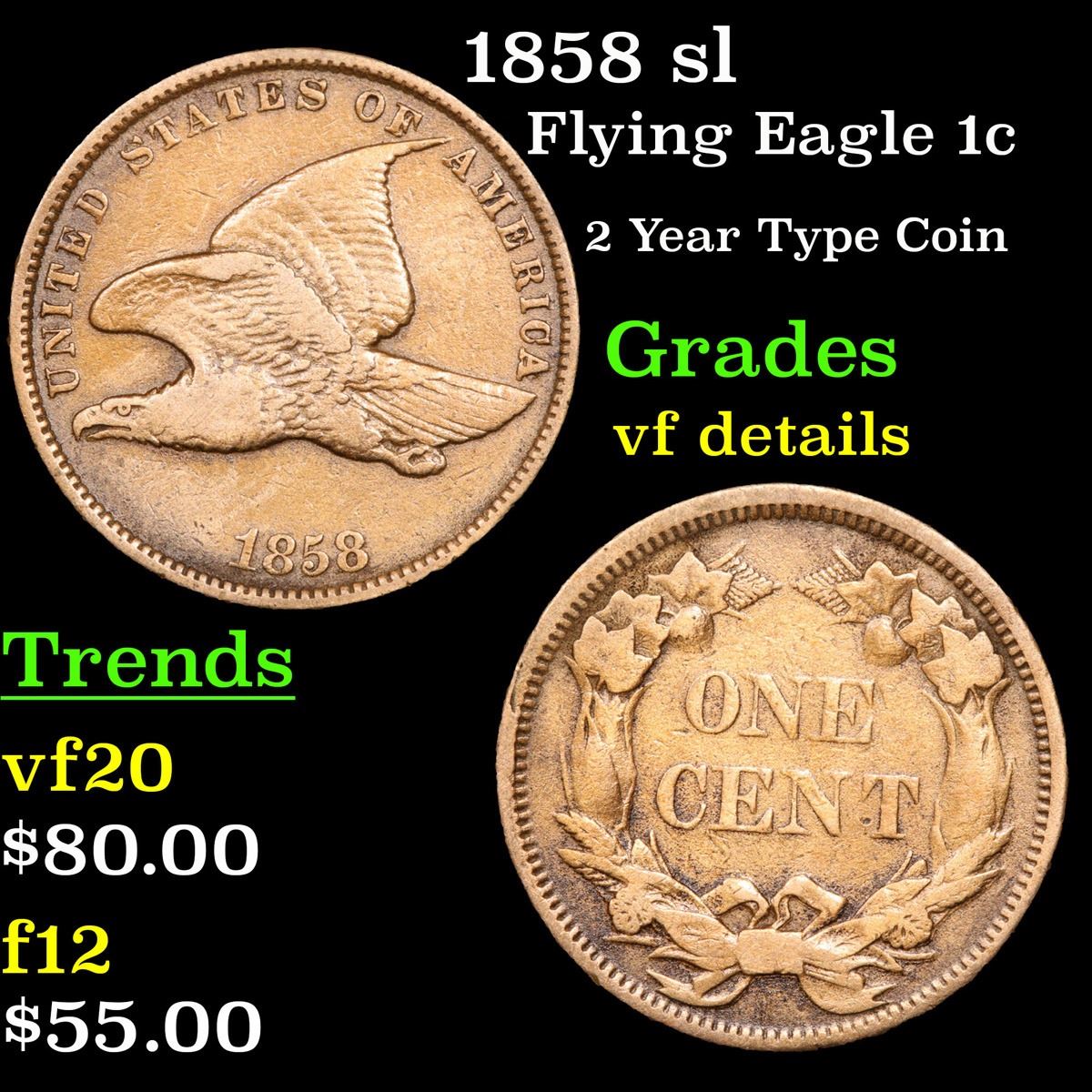 1858 sl 2 Year Type Coin . Flying Eagle Cent 1c Grades vf details.