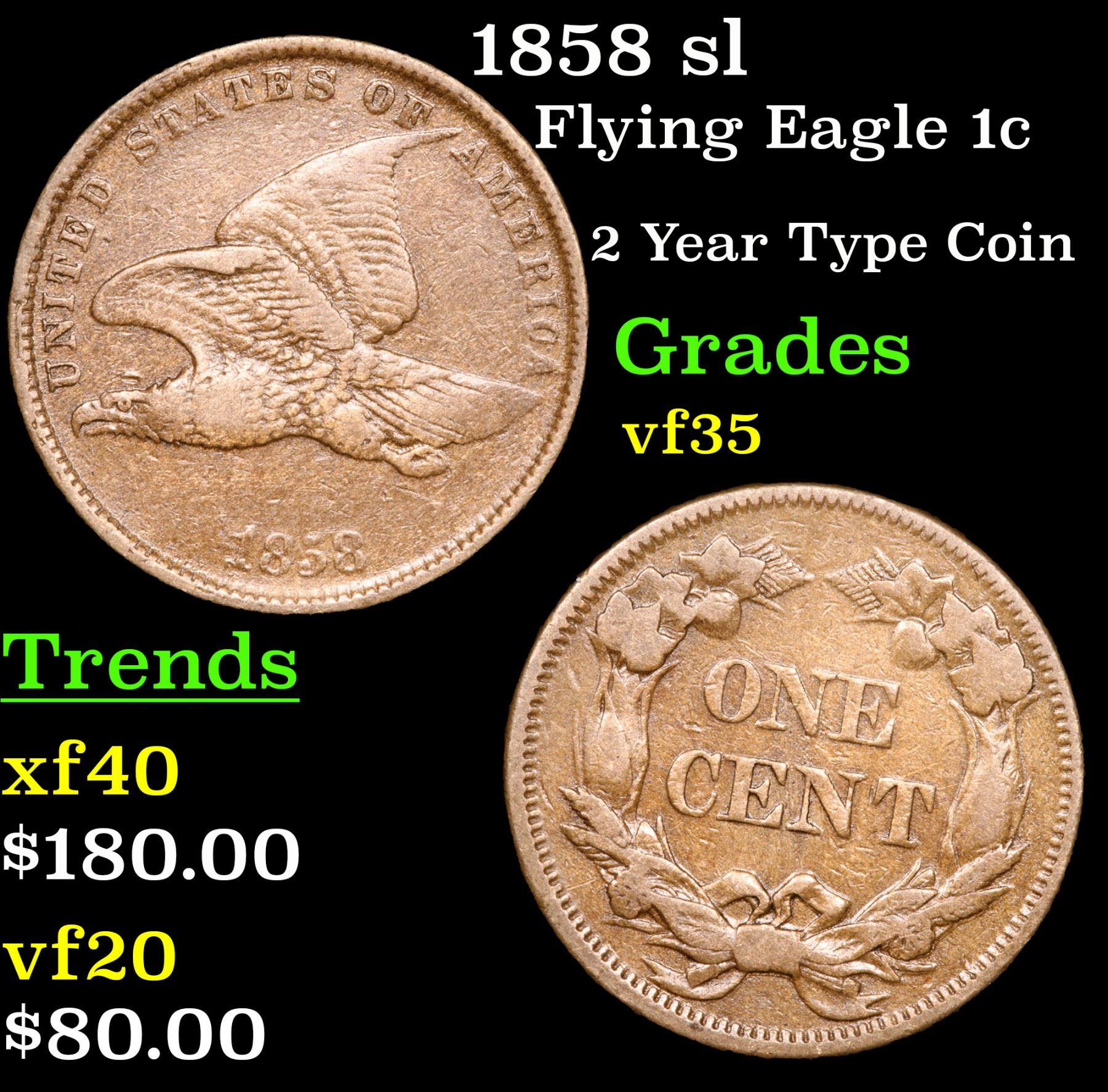 1858 sl 2 Year Type Coin . Flying Eagle Cent 1c Grades vf++.