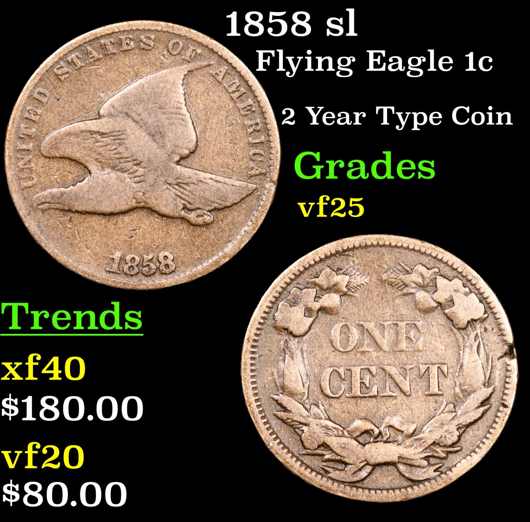 1858 sl 2 Year Type Coin . Flying Eagle Cent 1c Grades vf+.