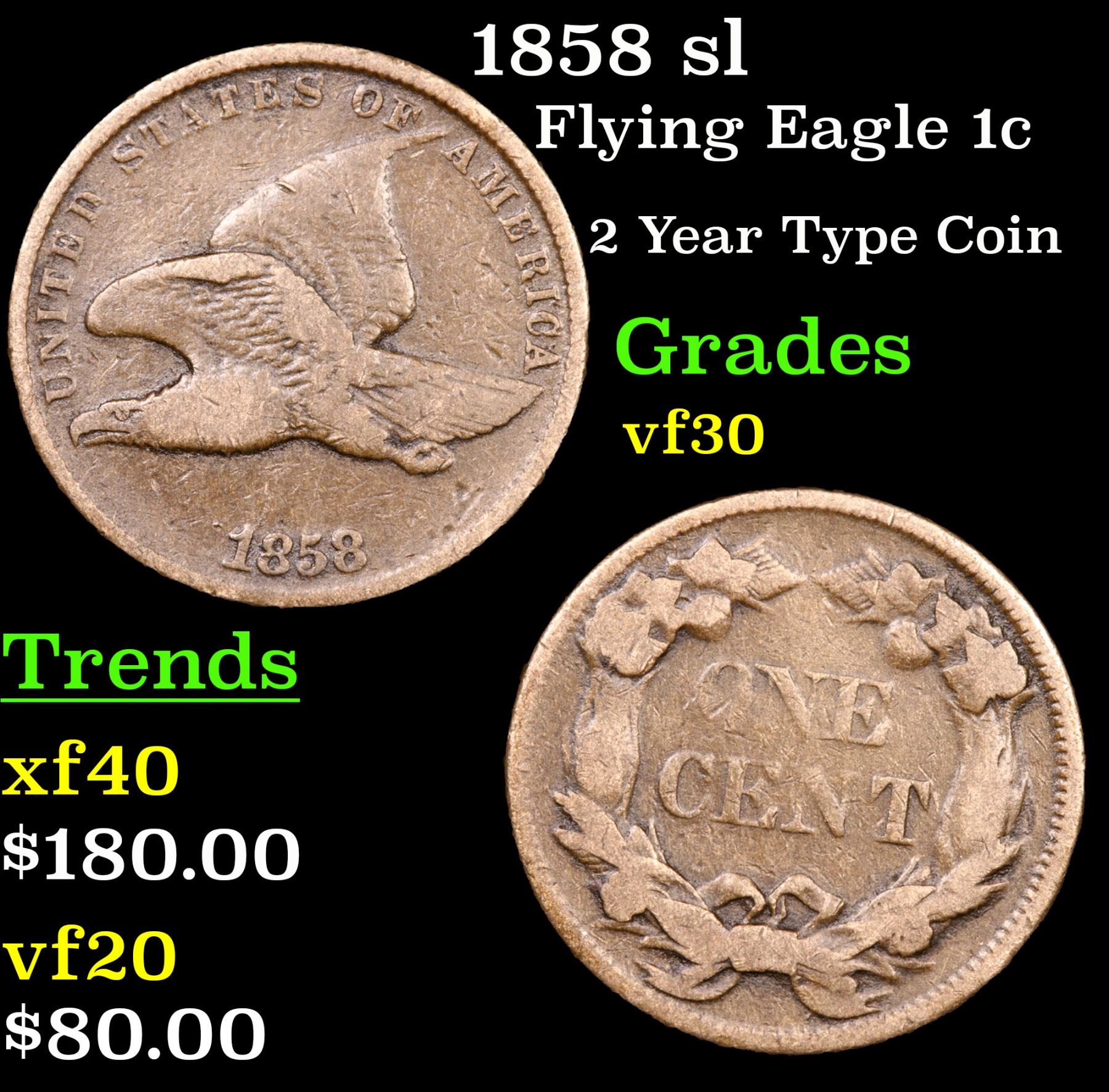 1858 sl 2 Year Type Coin . Flying Eagle Cent 1c Grades vf++.