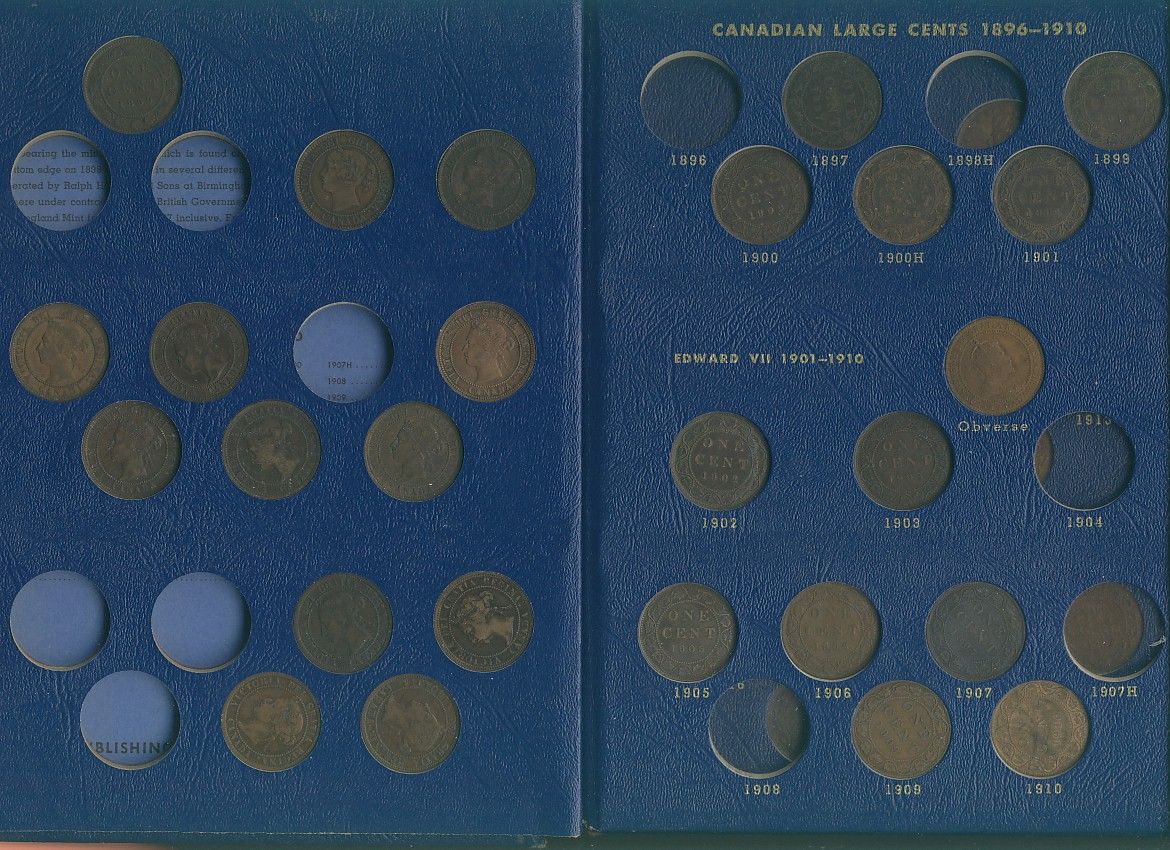 1858 to 1920 1¢ Partial Set. Comes in old blue Whitman holder. Includes 37 pcs with only 1858 & 1900 as key date. VG to VF