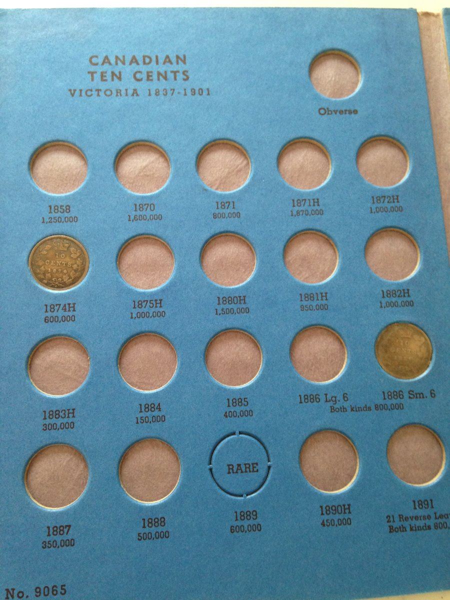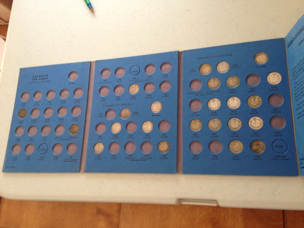 1858 to 1936 Canadian Silver Ten Cents Collection