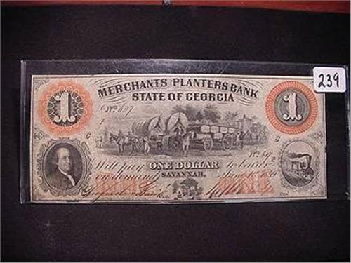 1859 $1.00 Merchants & Planters Bank Obsolete Currency - Savannah, Ga. AU