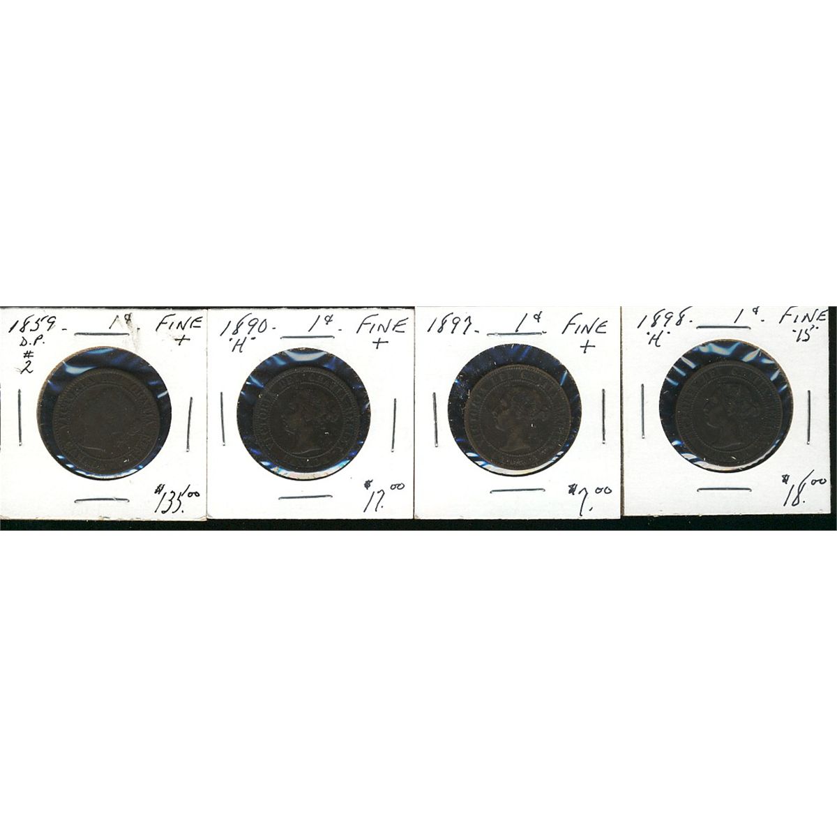1859 1¢ DP #2, 1890H, 1897 & 1898H. Lot of 4 coins. (PBA)