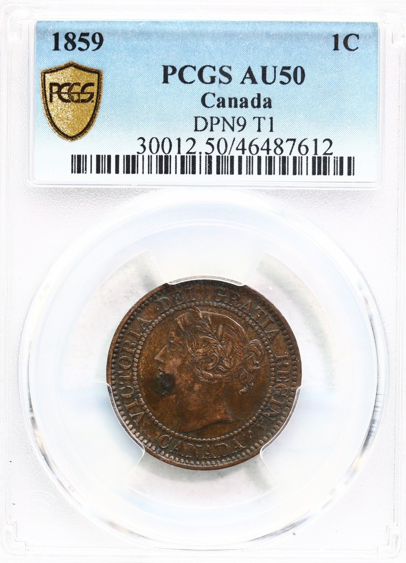 1859 1¢ "DP N9 #1" PCGS About Uncirculated-50 Nice chocolate lustrous brown example. A better variety! BV $1250