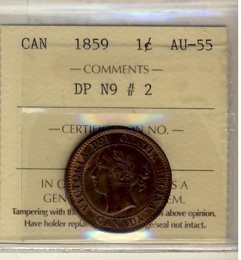 1859 1¢ DP N9 #2 ICCS AU55.