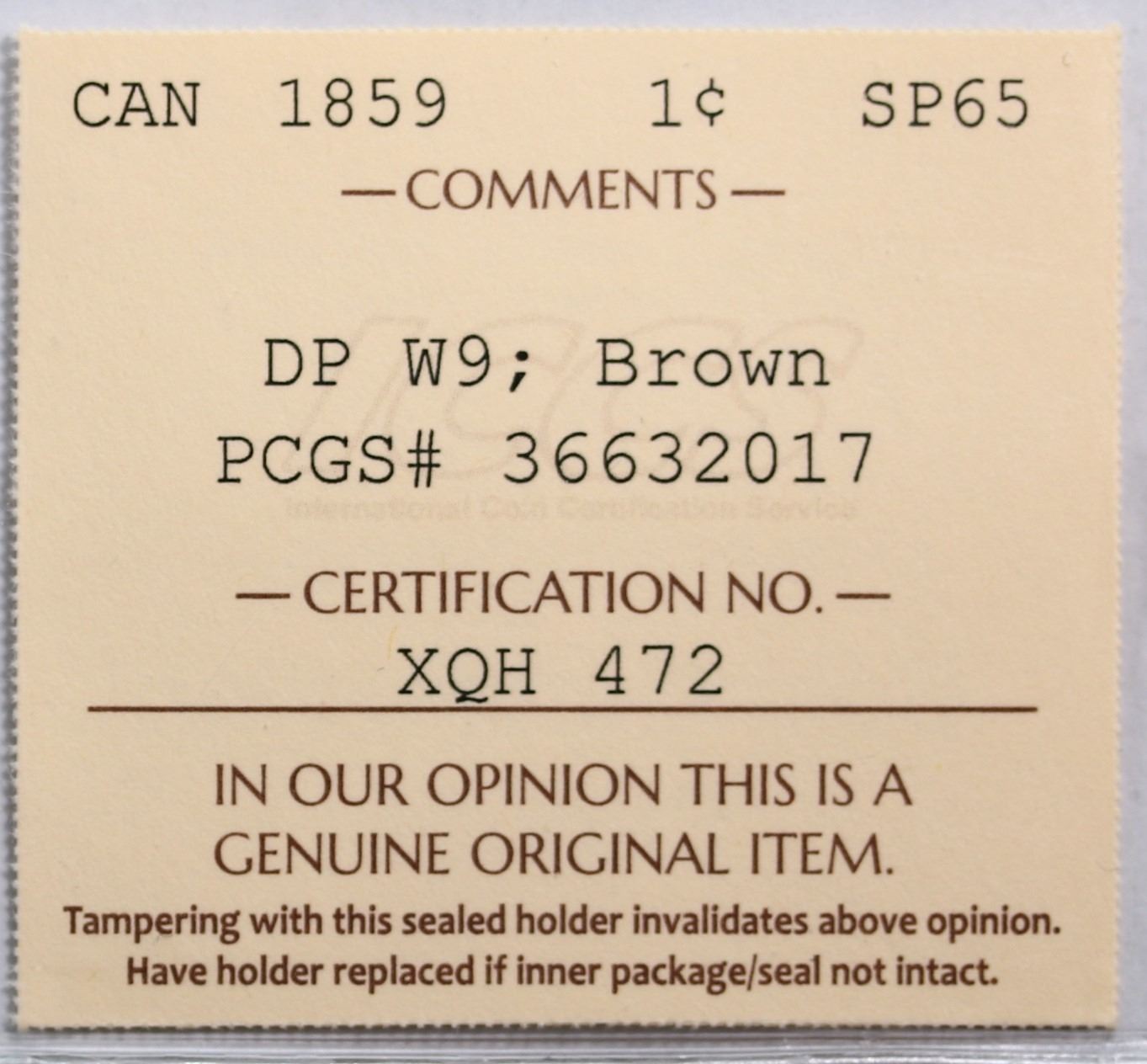 1859 1¢ "DP Wide 9" PCGS Gem SPECIMEN-65BN Not often handled, a highly attractive and beautiful example to add to the best of collections. A perfect opportunity to acquire this wonderful example! It displays untouched fields and great surfaces. Amongst the best we have offered and sure to excite the collector who has been holding out for the best example possible. Ex. Norweb example. This is an excellent and unbeatable opportunity for those who collect quality Large cents or the many varieties of the 1859 series.