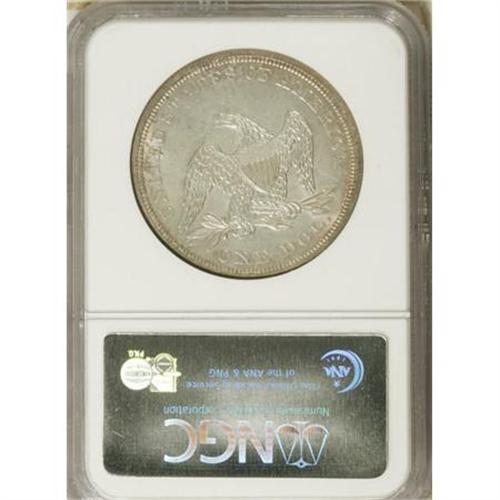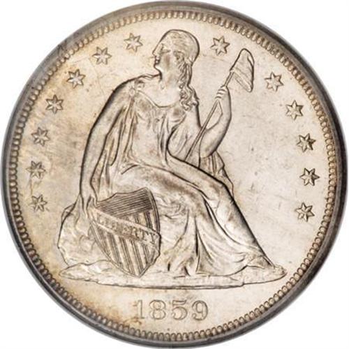 <B>1859 $1 MS63 NGC. CAC.</B></I> Most 1859 business strike dollars were exported to China (David Bowers, 2006), making the issue scarce in all grades. Champagne-gold patina visits the borders of this pleasing Select example, and lustrous surfaces are devoid of serious marks. A well directed strike imparts sharp definition to the devices.<BR><I>From The Queller Family Collection of Silver Dollars.</B></I><BR><BR><B>Coin Engraver:</B> Christian Gobrecht<BR><BR><b>Shipping:</b> Coins & Currency (<a target="_blank" href="http://www.heritageauctions.com/common/shipping.php">view shipping information</a>)