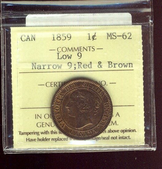1859 1¢ Nar 9, Low 9 ICCS MS62RB.