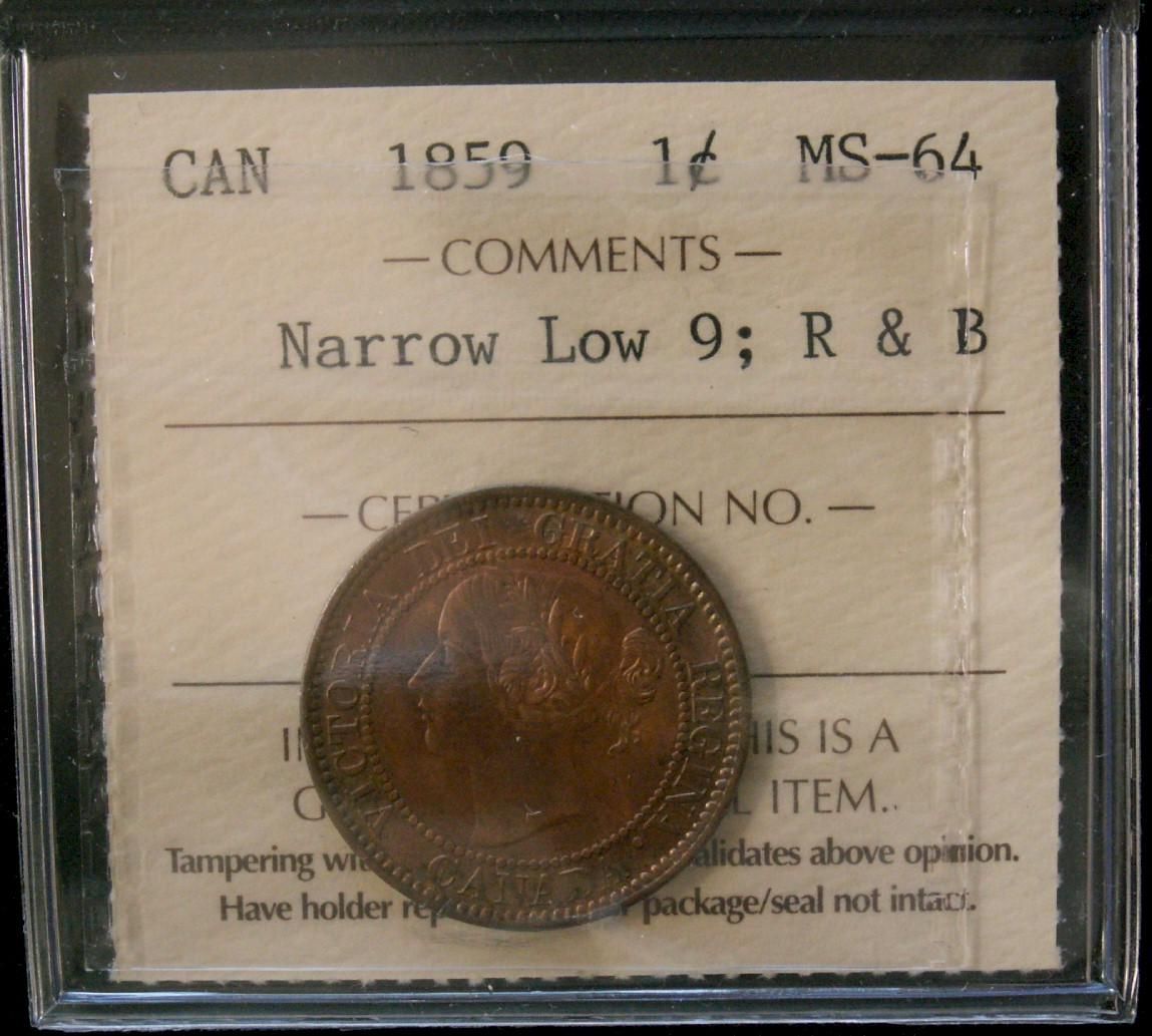 1859 1¢ Nar Low 9 ICCS MS64RB.