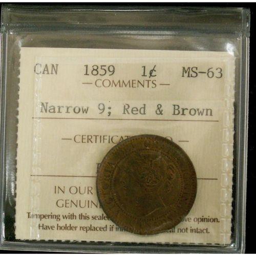 1859 1¢ Narrow 9 ICCS MS63RB, shows nice lustre