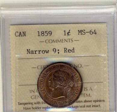 1859 1¢ Narrow 9 ICCS MS64RD.