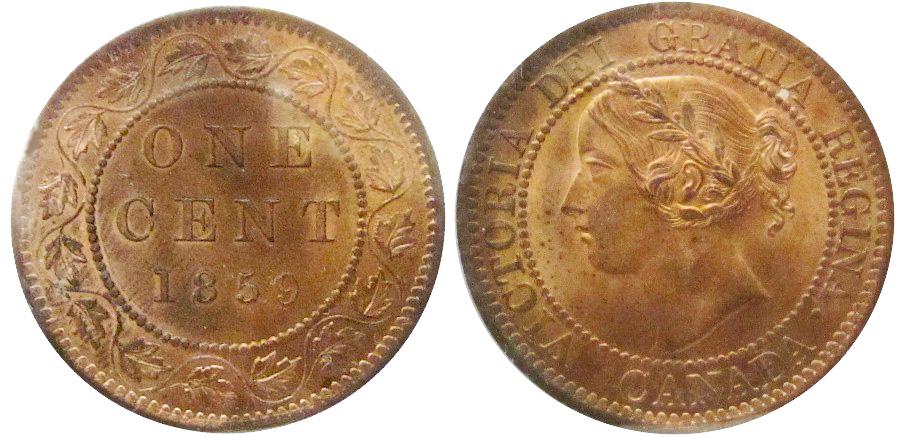 1859 1¢ Narrow 9 ICCS MS66RD. Pristine issue 95% red with light frost finish. THE FINEST KNOWN! A fabulous "Victorian" example in pristine condition, don't miss this opportunity to acquire the nicest example on the market. Worth a premim bid.
