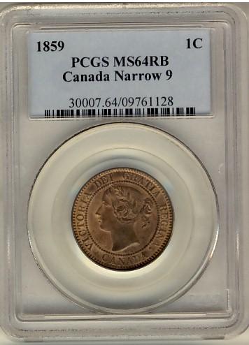 1859 1¢ Narrow 9 PCGS MS64RB. Lots of lustre and red. Looks better.