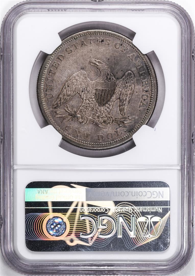 One 1859 $1 Seated Liberty Silver Dollar Coin NGC AU50. NGC Certified.