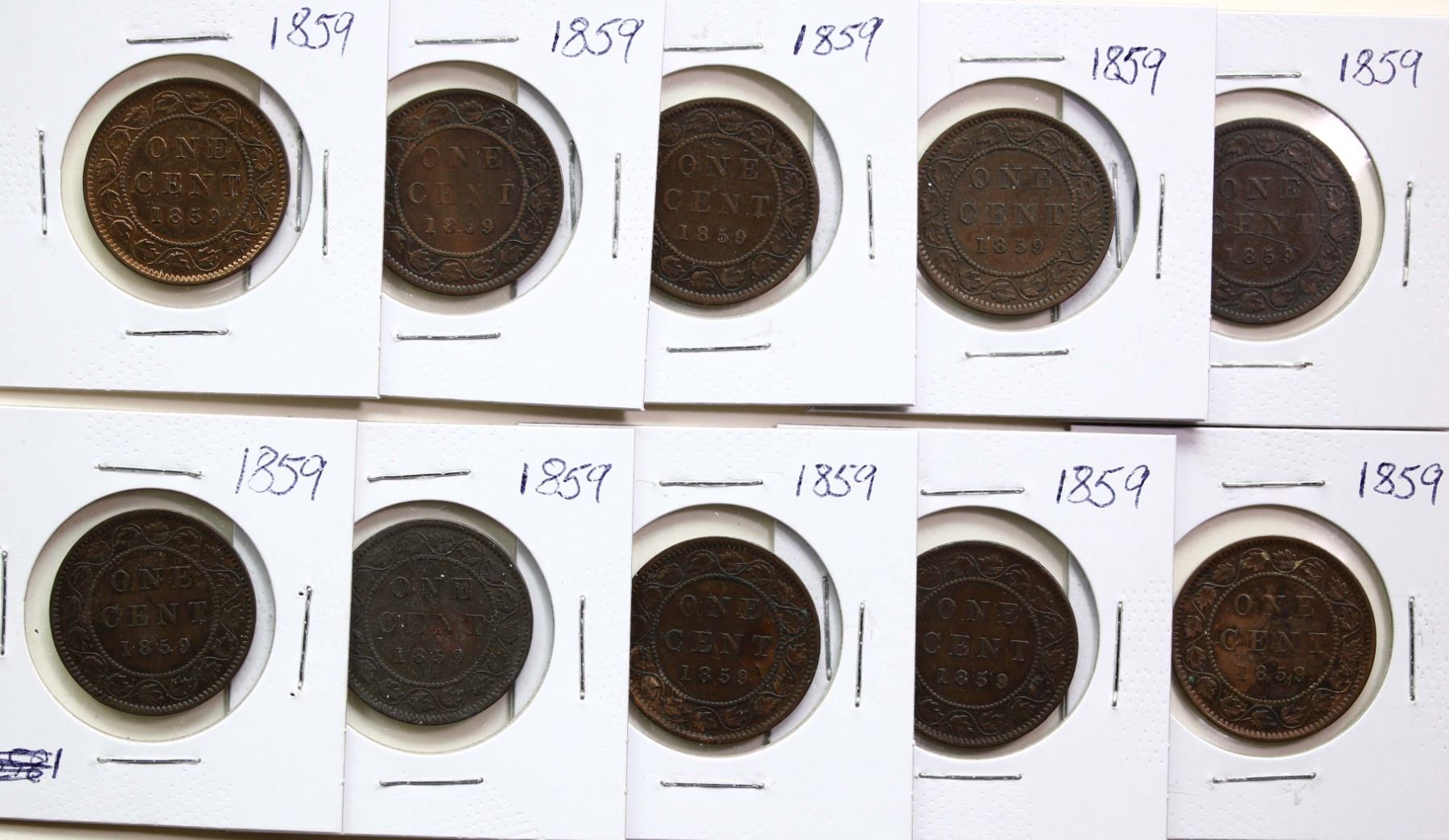 1859 1¢ VG to VF. A nice Lot of 17 pieces.