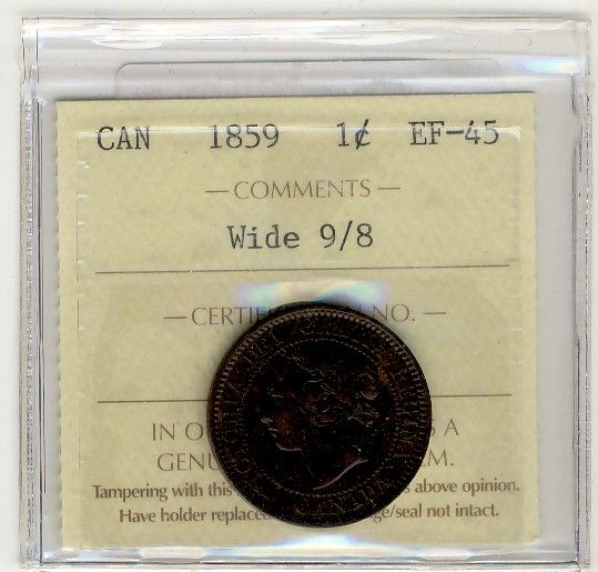 1859 1¢ Wide 9/8 ICCS EF45.