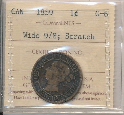 1859 1¢ Wide 9/8 ICCS G6. Designated with scratch.