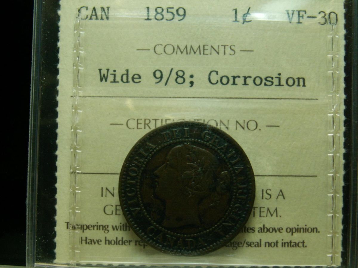 1859 1¢ Wide 9/8 ICCS VF30 Light Corrosion