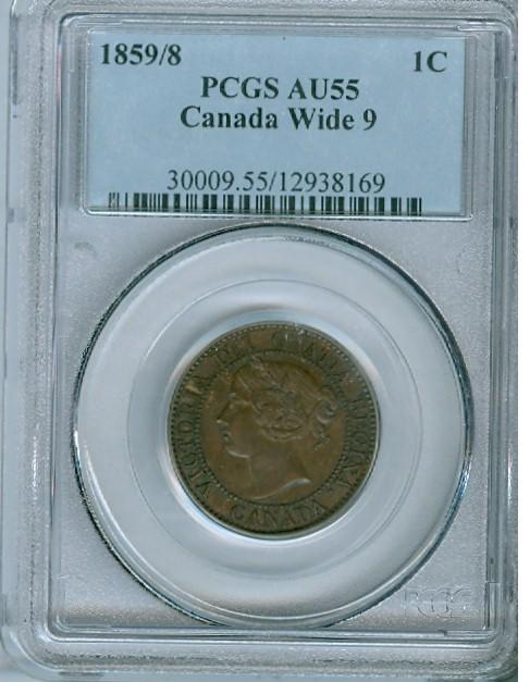 1859 1¢ Wide 9/8 PCGS AU55, a nice chocolate brown example
