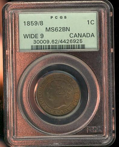 1859 1¢ Wide 9/8 PCGS MS62BN.