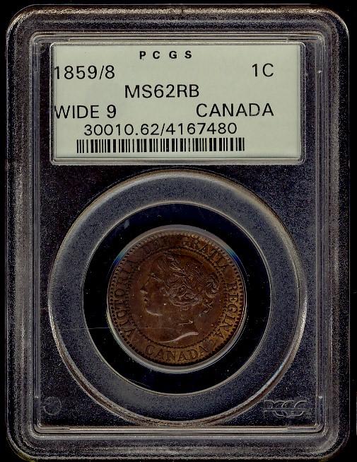 1859 1¢ Wide 9/8 PCGS MS62RB