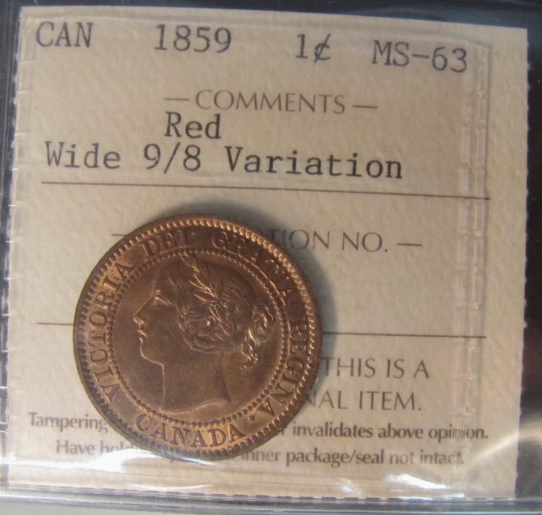 1859 1¢ Wide 9/8 variation ICCS MS63RD.
