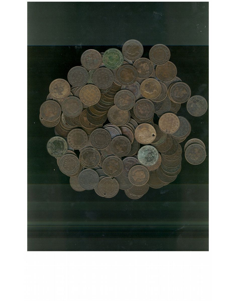 1859 1¢ to 1901 Victorian Large Cent Lot. Includes 150 pcs Good to F. Nice lot with very few problems issues.