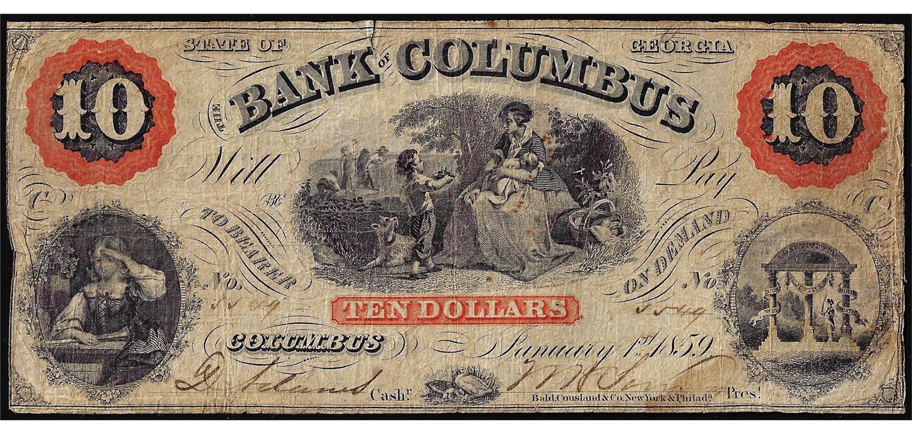 One 1859 $10 The Bank of Columbus Georgia Obsolete Note.