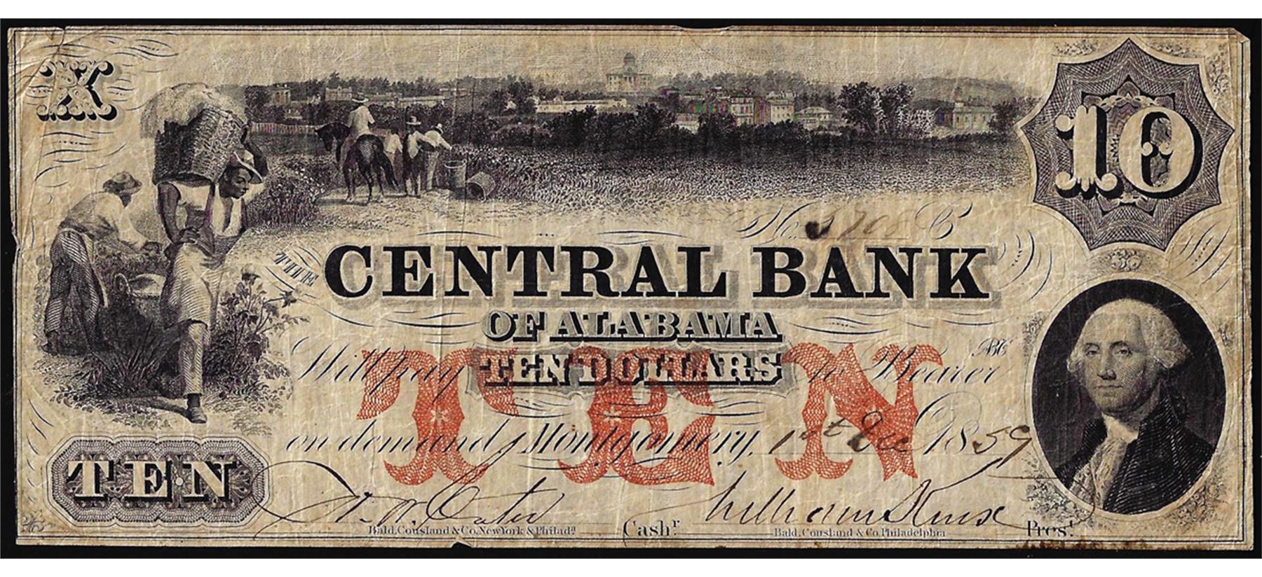 One 1859 $10 The Central Bank of Alabama Obsolete Note.