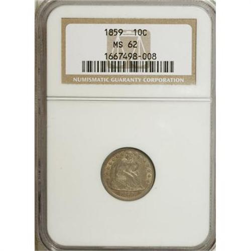 1859 10C MS62 NGC. NGC Census: (14/97). PCGS Popul