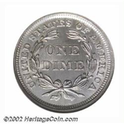 1859 10C MS66 NGC. Formerly offered as lot 589 in our New York Bullet Sale, where it was described as, "A definite find for the Gem quality type collector, this coin is also scarce from a condition standpoint. Every feature is sharply detailed, and there is not a single distracting blemish on the untoned surfaces." Population: 10 in 66, with 8 finer (7/02). Important notice: We expect to be auctioning lots at the rate of 200-250 per hour. Sometimes eBay Premier live bid software cannot keep up with that pace, so we strongly recommend that you place a realistic proxy bid now as insurance to avoid disappointment. Also please note that all Heritage/CAA lots purchased through eBay Premier carry a 20% Buyer's Premium. Please make sure you read the Terms and Conditions.