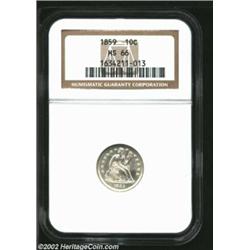 1859 10C MS66 NGC. Formerly offered as lot 589 in our New York Bullet Sale, where it was described a