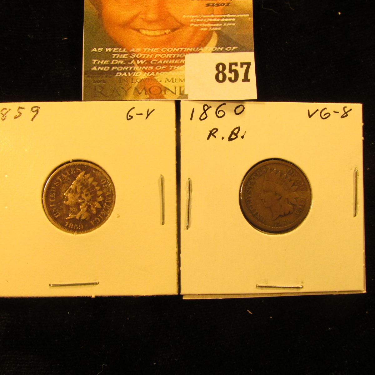 1859 & 1860 U.S. Indian Head Cents.