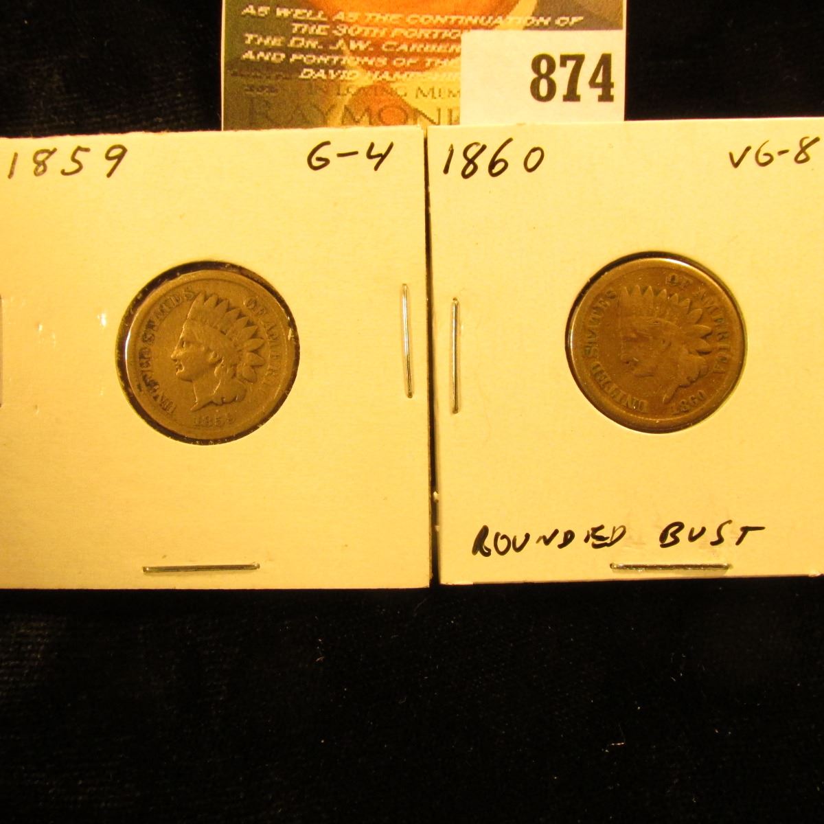 1859 & 1860 U.S. Indian Head Cents.