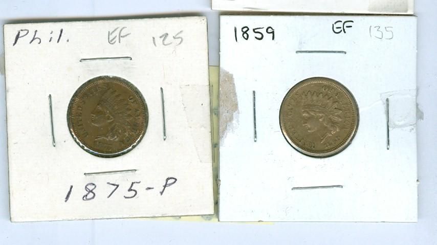 1859 & 1875-P 1¢. Lot of 2 coins EF/AU with trace of lustre.