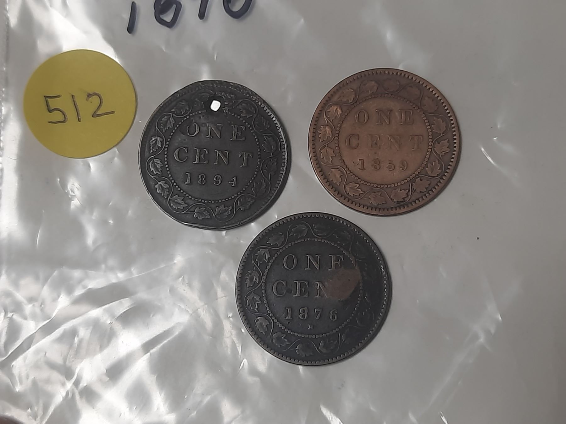 1859, 1876, 1894 Canadian Large One Cent.