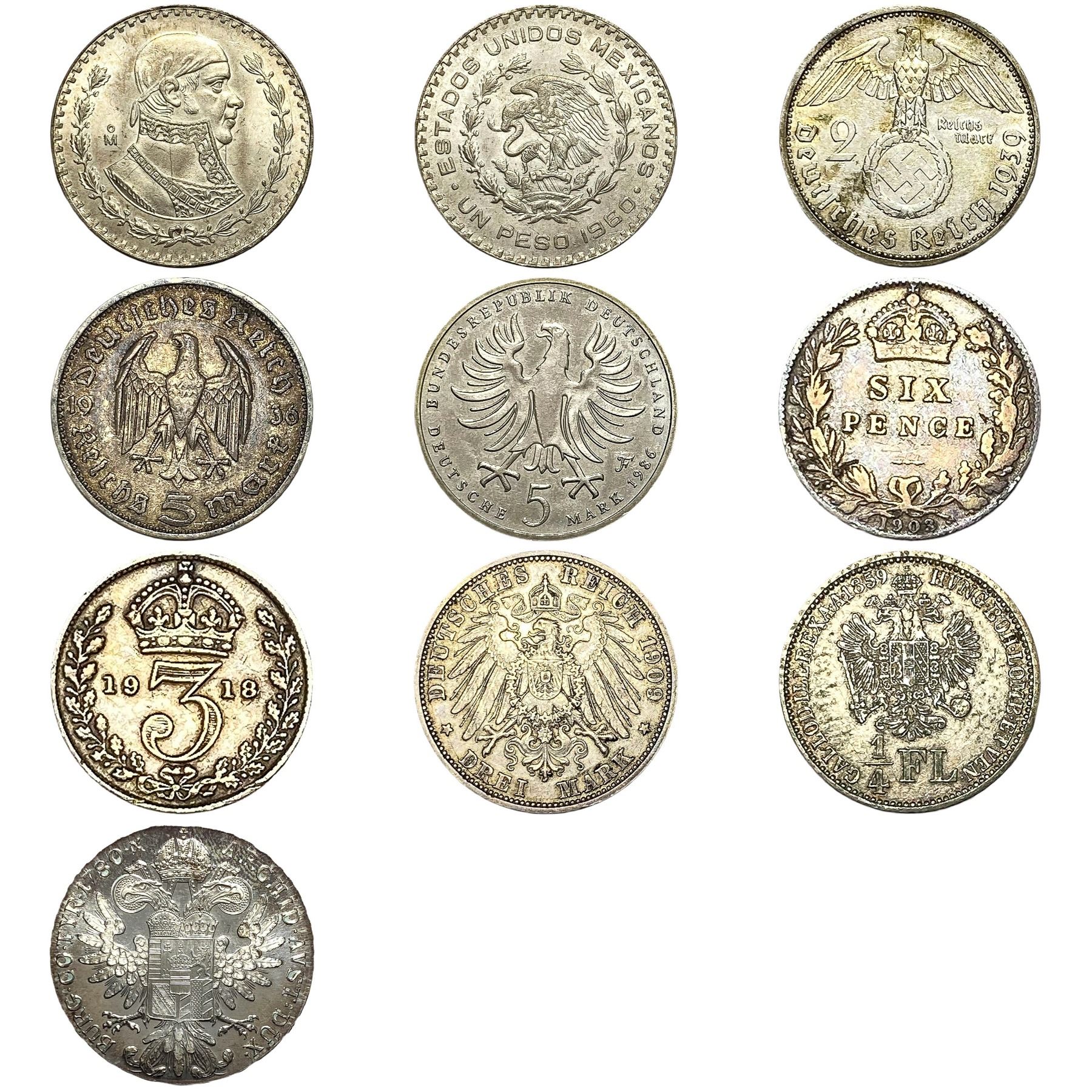 1859-1986 Varied Silver Foreign Coin Lot [10 Coins]