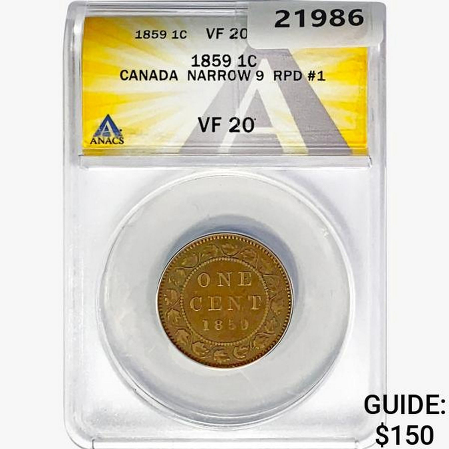1859 1C Canada Narrow 9 ANACS VF20 RPD#1