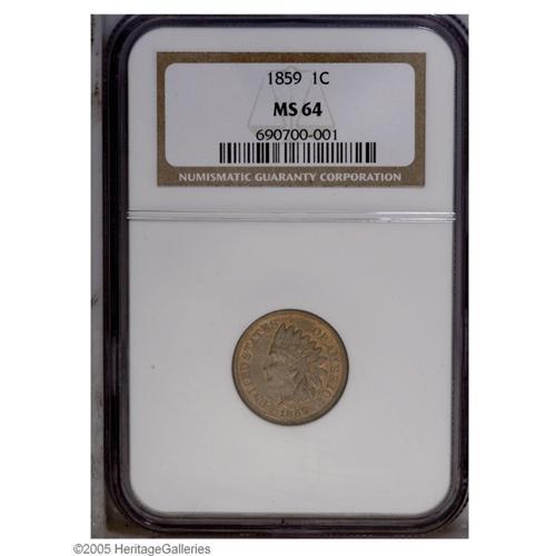 1859 1C MS64 NGC. The orange-gold color has acquired t 1859[1C] MS64 NGC.