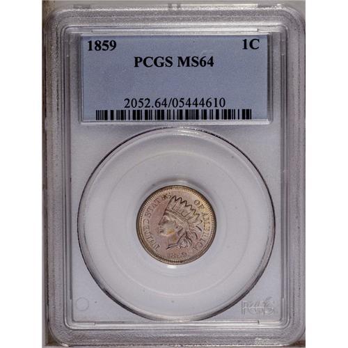 1859 1C MS64 PCGS. Sharply struck on all of the design 1859[1C] MS64 PCGS.